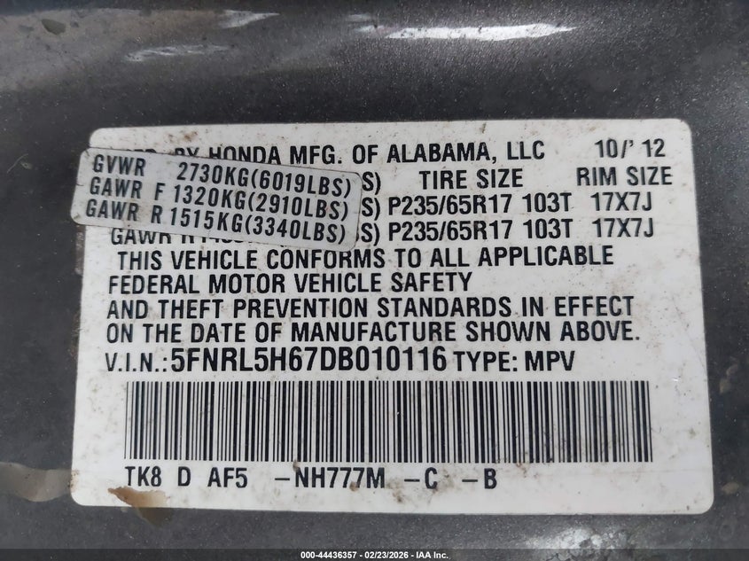 • 5FNRL5H67DB010116