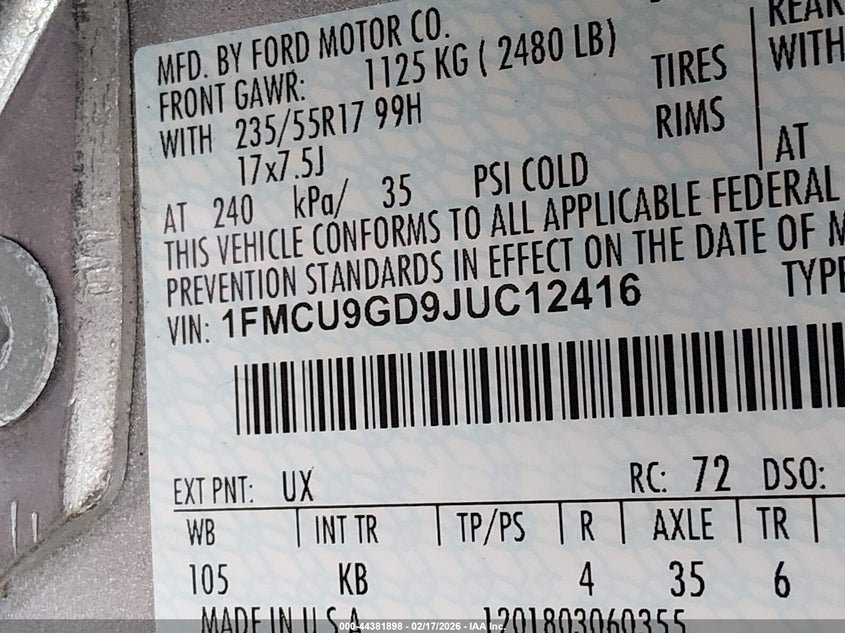 • 1FMCU9GD9JUC12416