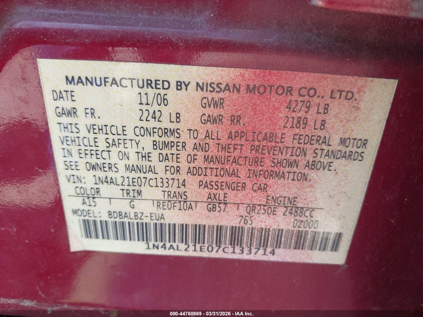 2007 NISSAN ALTIMA 2.5 S for Sale in Baltimore, MD