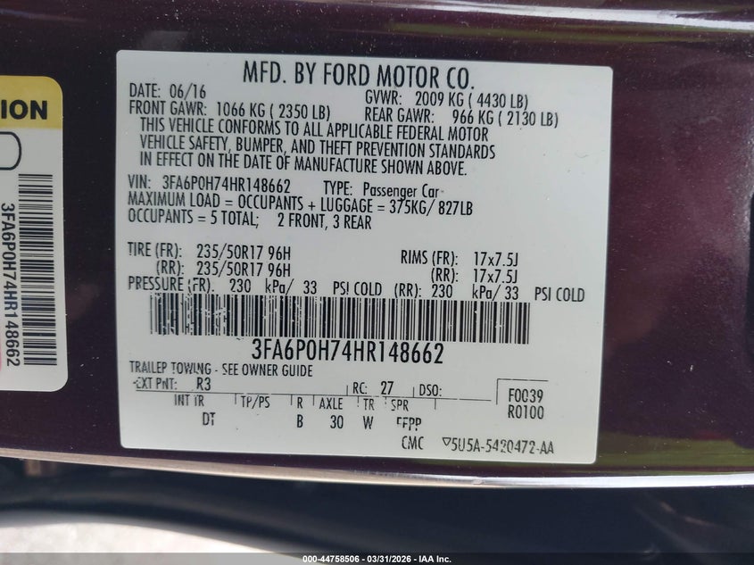 • 3FA6P0H74HR148662