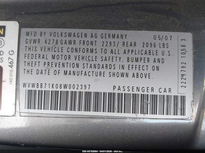 • WVWBB71K08W002397