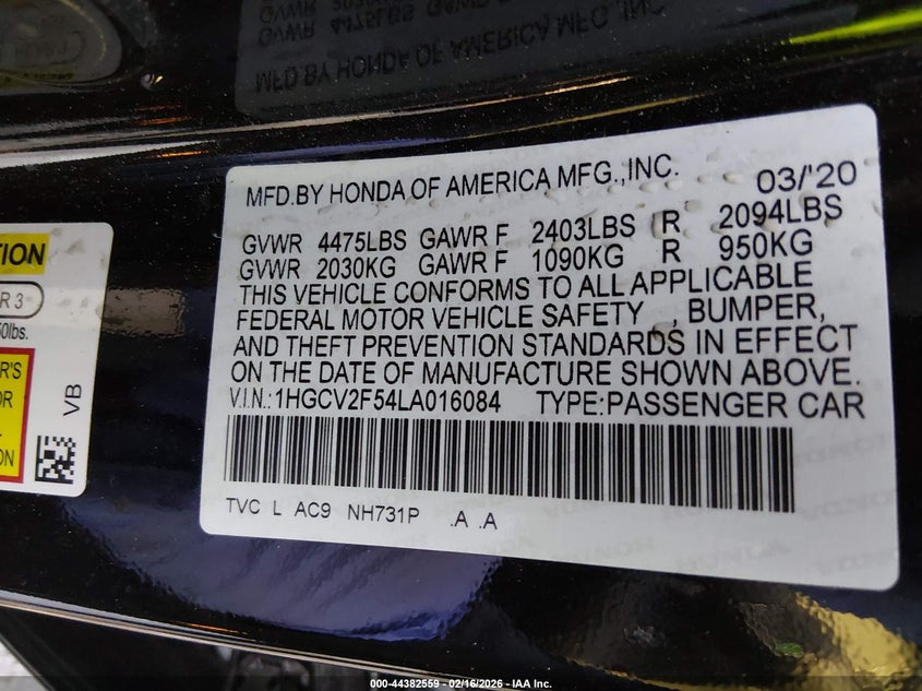 • 1HGCV2F54LA016084