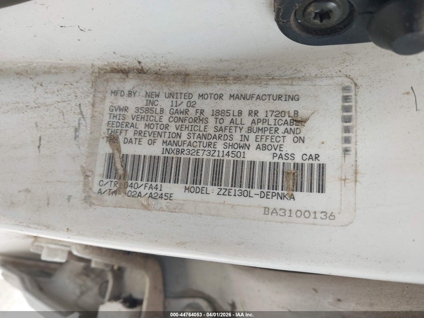 • 1NXBR32E73Z114501