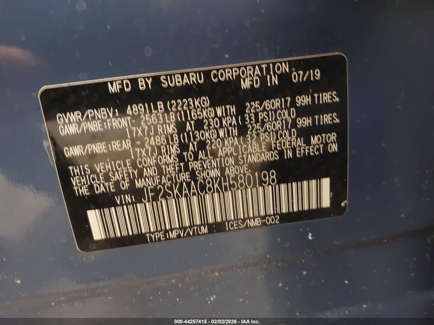 • JF2SKAAC8KH580198