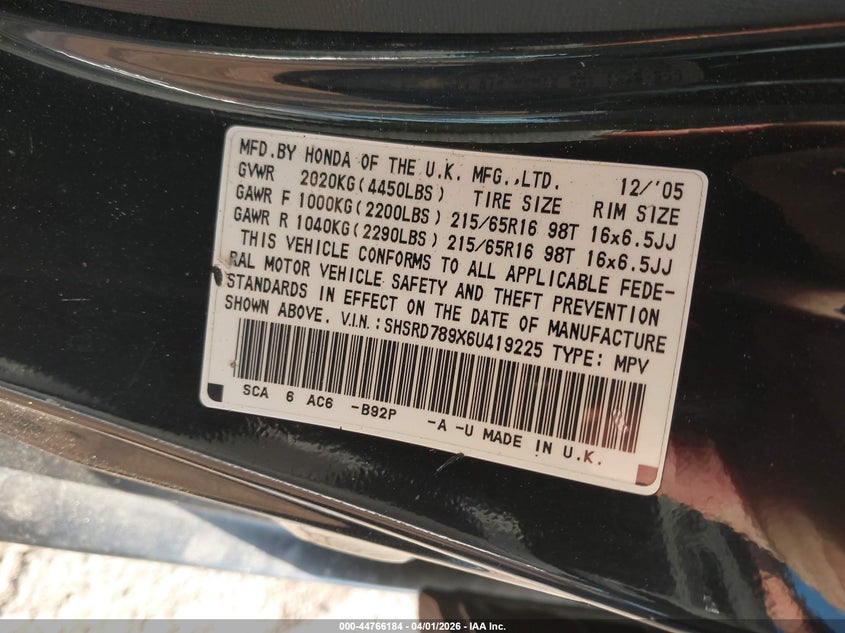 • SHSRD789X6U419225