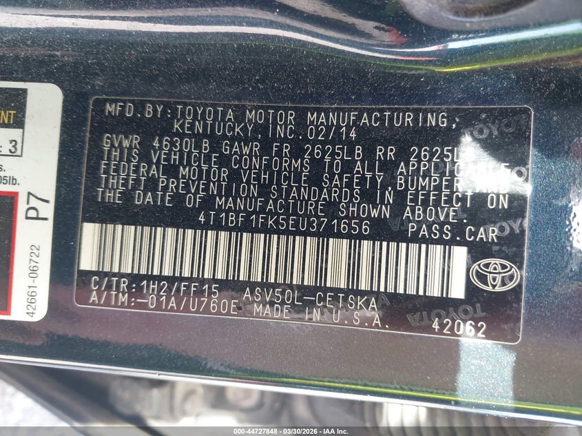 • 4T1BF1FK5EU371656
