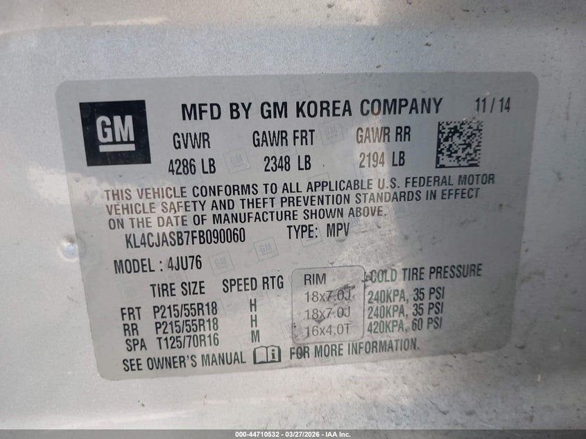 • KL4CJASB7FB090060