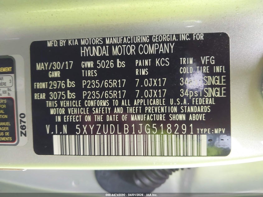 • 5XYZUDLB1JG518291