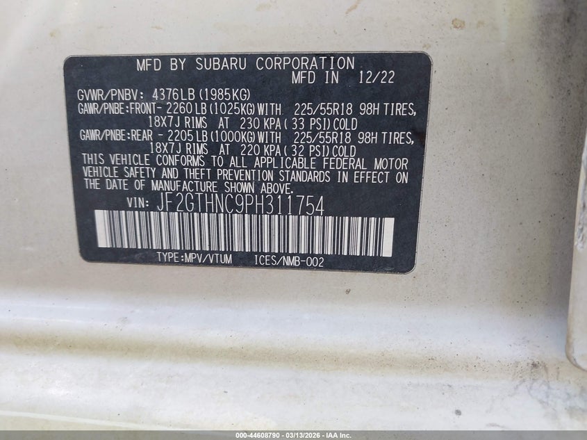 • JF2GTHNC9PH311754