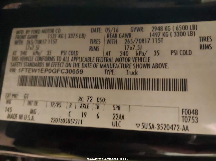• 1FTEW1EP0GFC30659