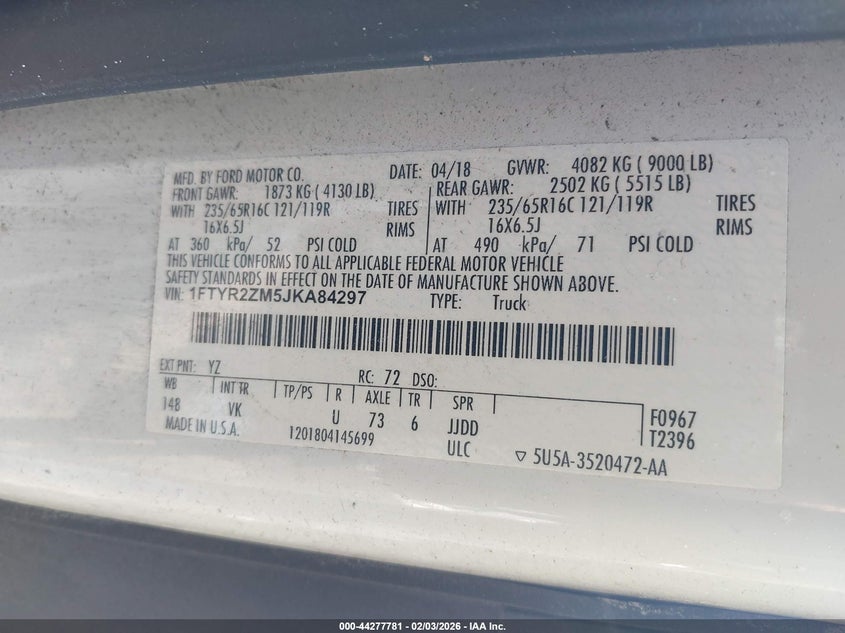 • 1FTYR2ZM5JKA84297