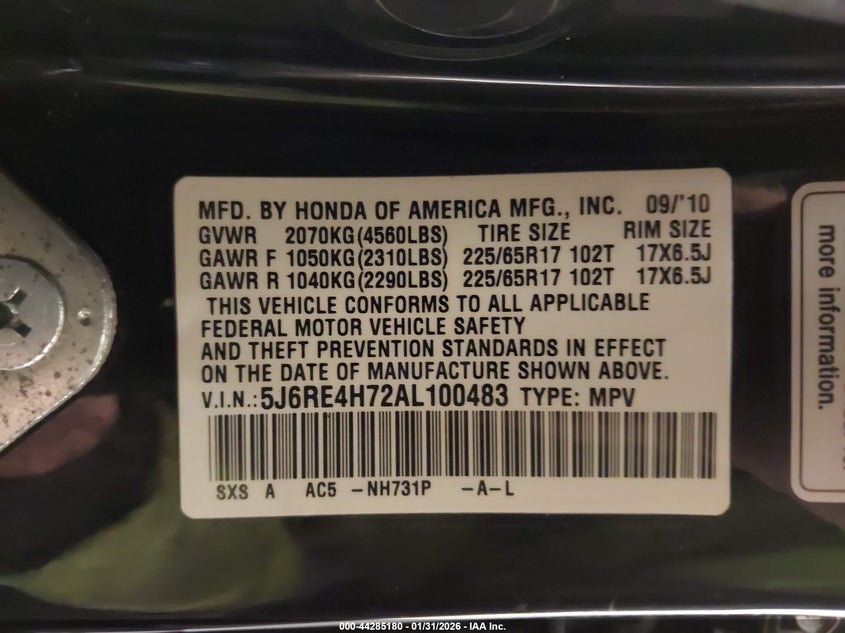 • 5J6RE4H72AL100483