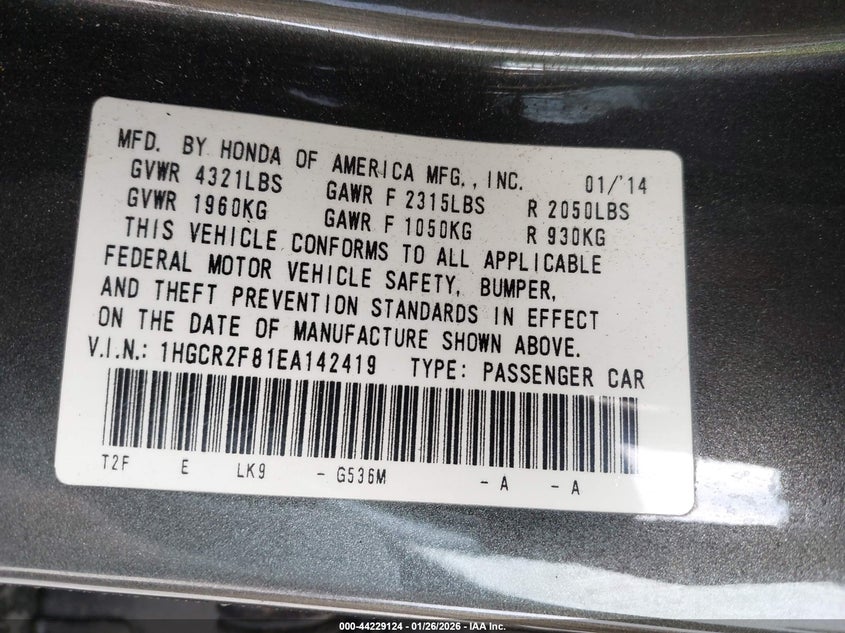 • 1HGCR2F81EA142419
