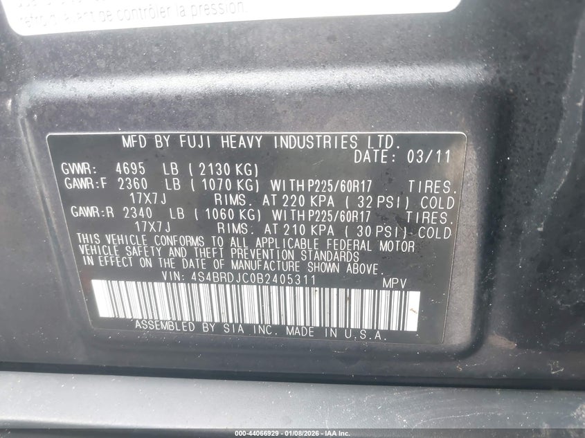 2011 SUBARU OUTBACK 3.6R LIMITED for Sale in Schenectady, NY