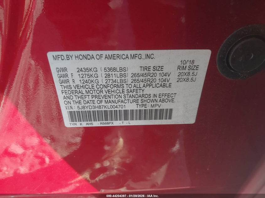 • 5J8YD3H87KL004701