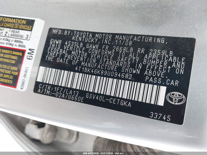 • 4T1BK46K89U094682