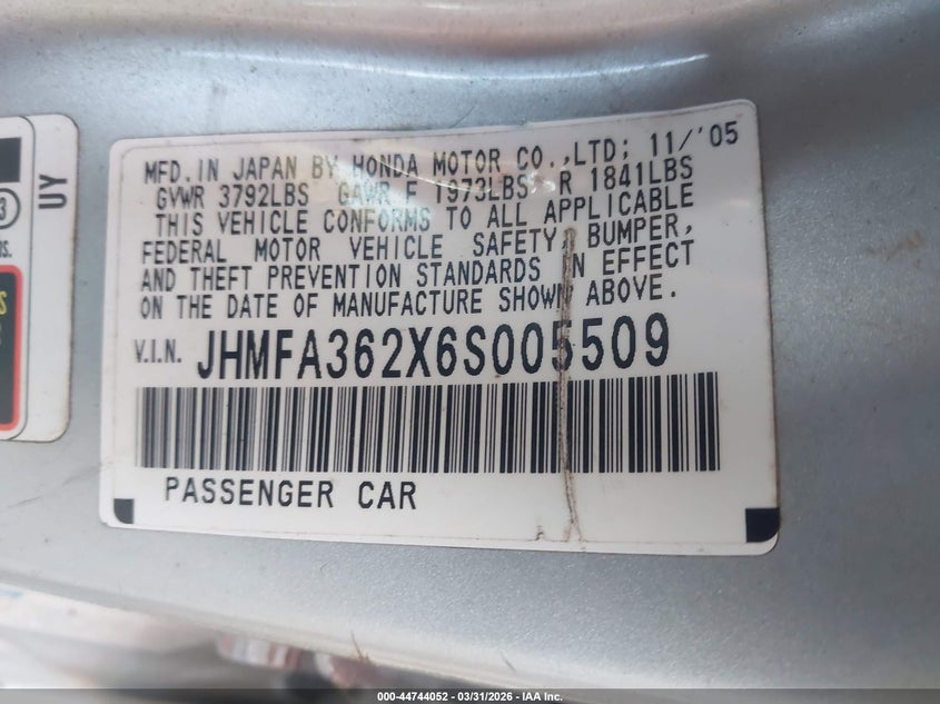 • JHMFA362X6S005509