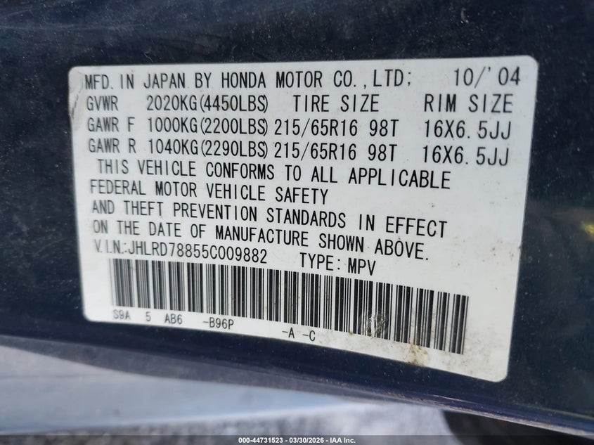 • JHLRD78855C009882