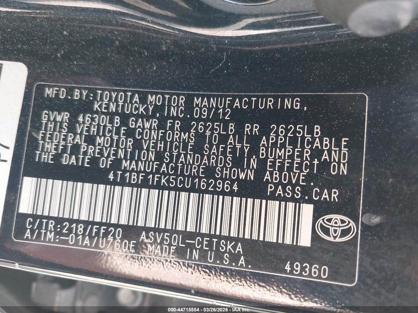 • 4T1BF1FK5CU162964