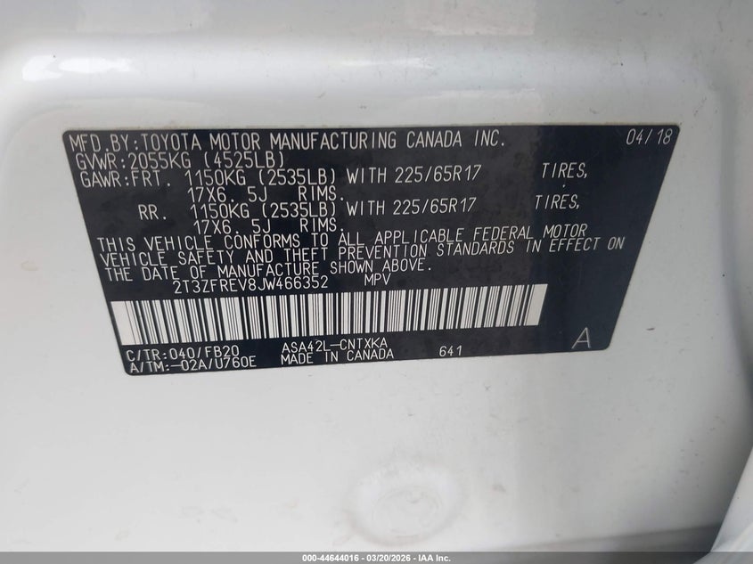 • 2T3ZFREV8JW466352