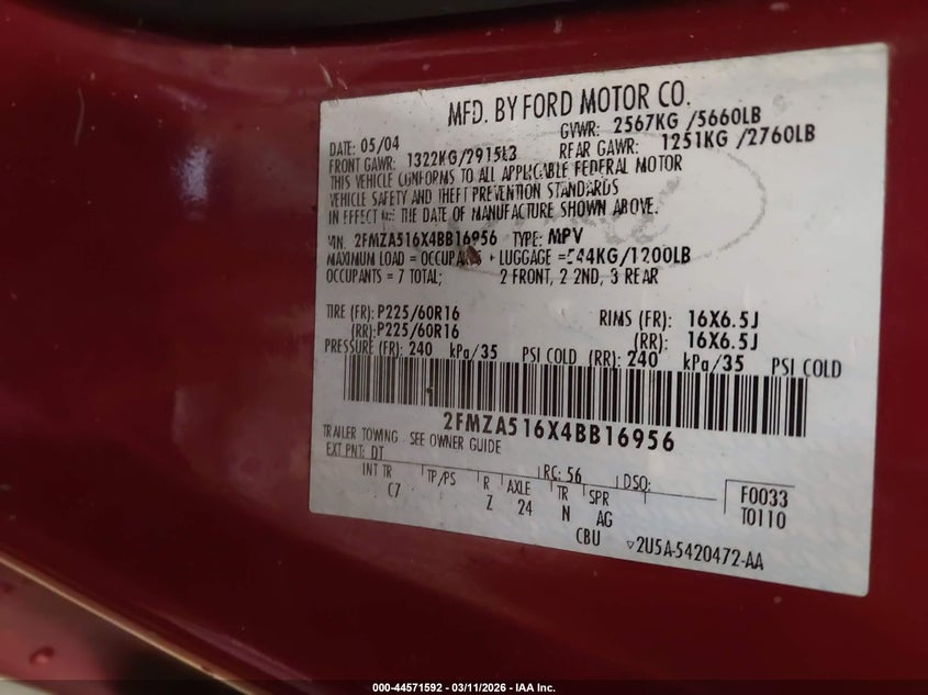 • 2FMZA516X4BB16956