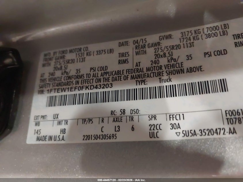 • 1FTEW1EF0FKD43203