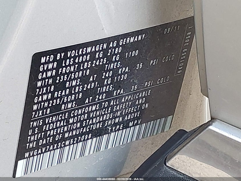 • WVGAV7AX3CW527098