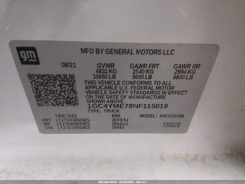 • 1GC4YME78NF115019