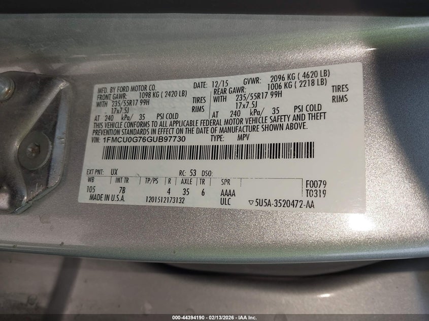 • 1FMCU0G76GUB97730