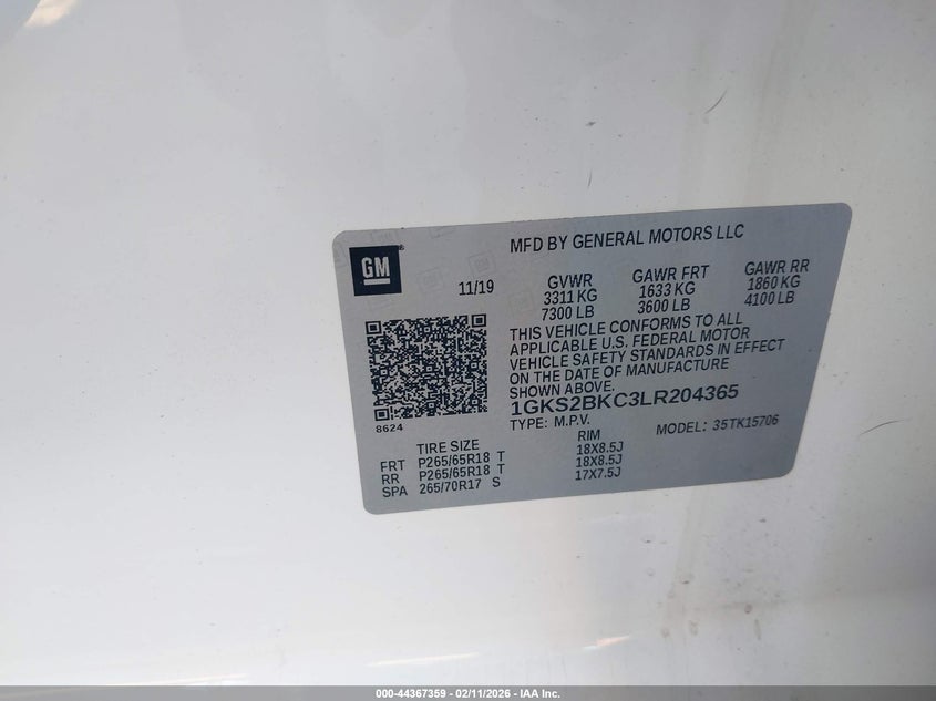 • 1GKS2BKC3LR204365