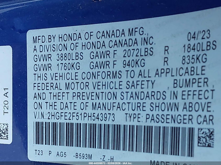 • 2HGFE2F51PH543973
