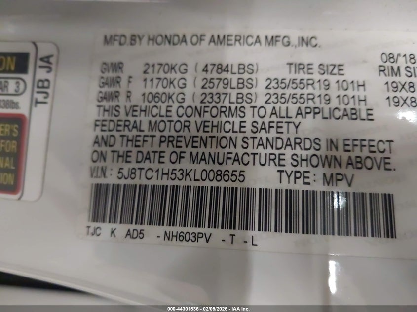 • 5J8TC1H53KL008655