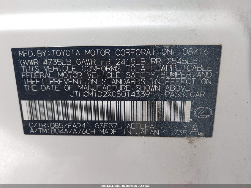 • JTHCM1D2XG5014339