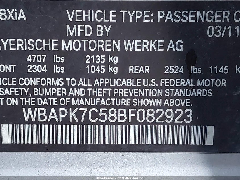 • WBAPK7C58BF082923
