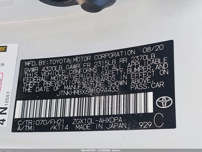 • JTNKHMBX6M1094433