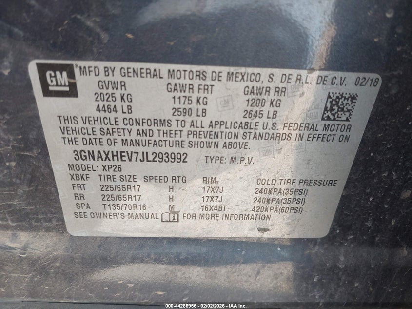• 3GNAXHEV7JL293992