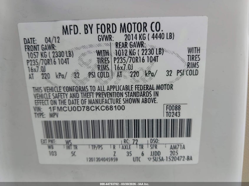 • 1FMCU0D78CKC68100