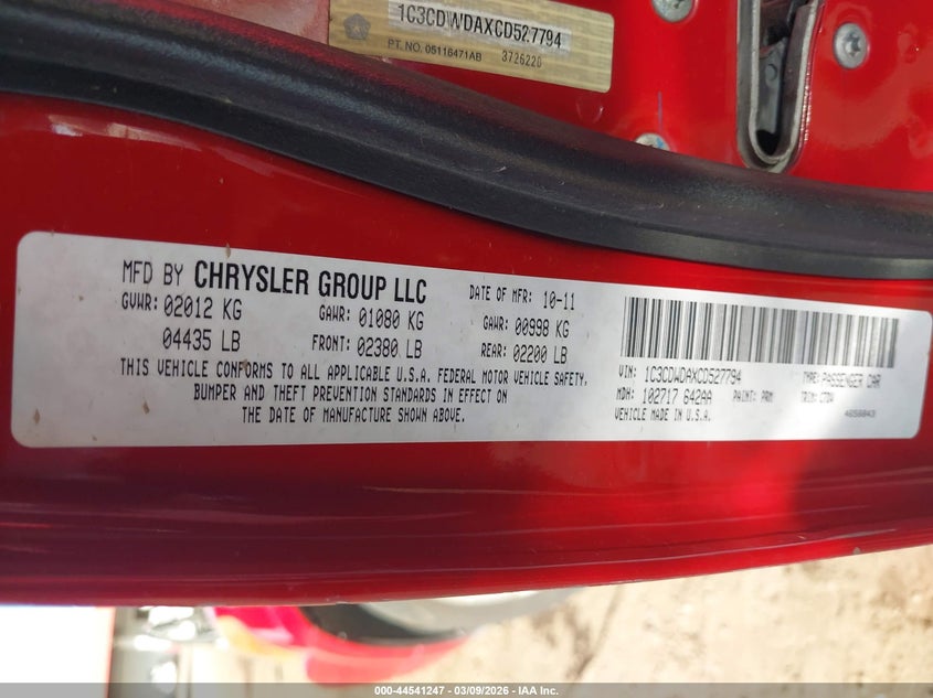 • 1C3CDWDAXCD527794