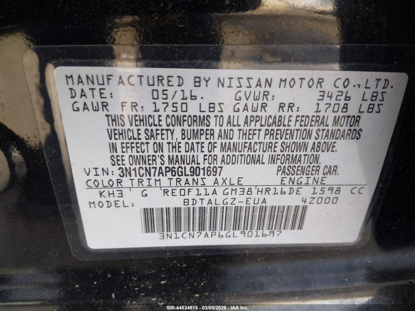 • 3N1CN7AP6GL901697