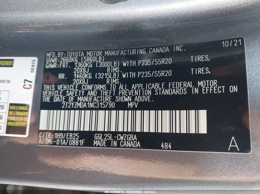 • 2T2YZMDA1NC315790
