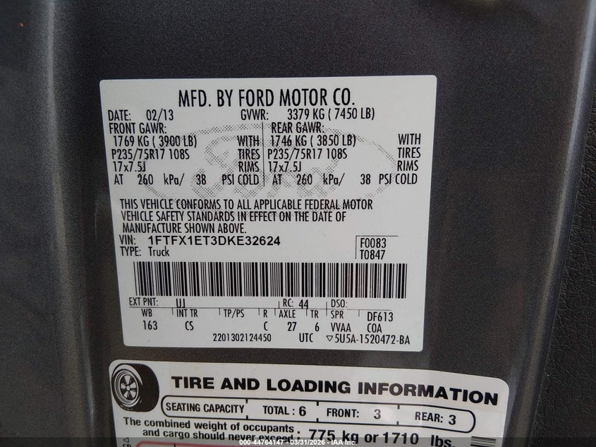 • 1FTFX1ET3DKE32624