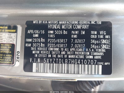 • 5XYZTDLB7HG410707