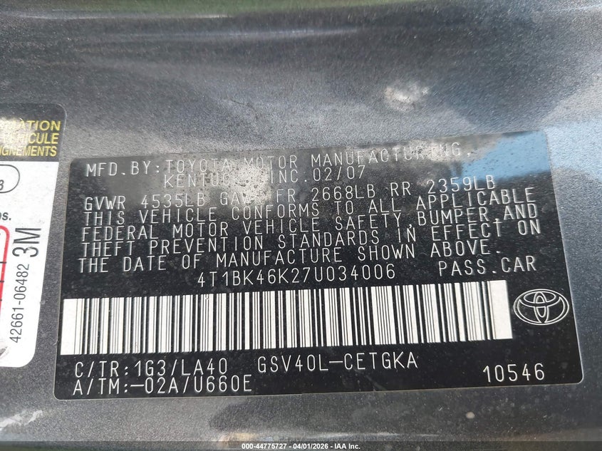 • 4T1BK46K27U034006