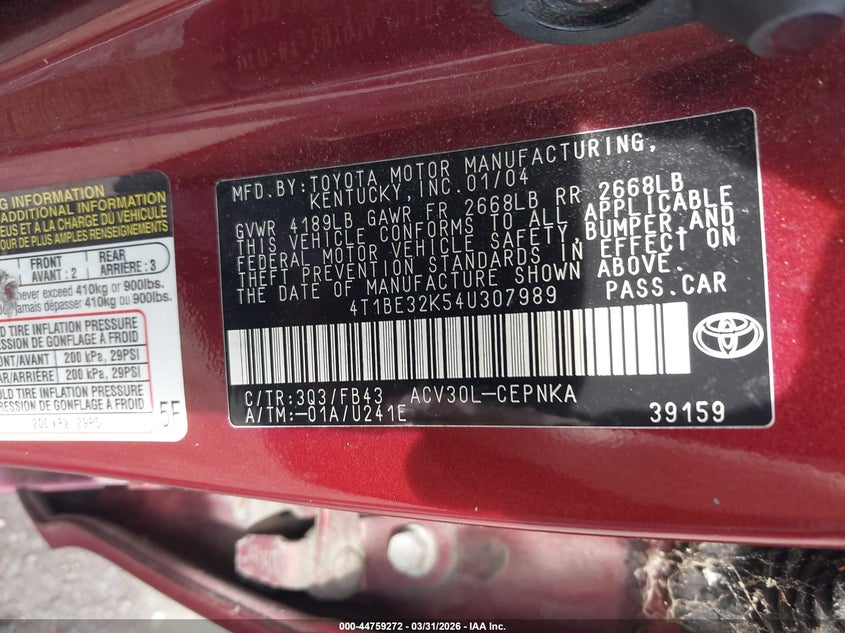 • 4T1BE32K54U307989