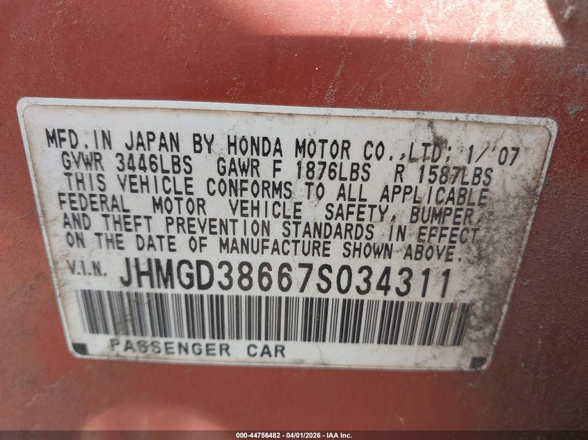 • JHMGD38667S034311