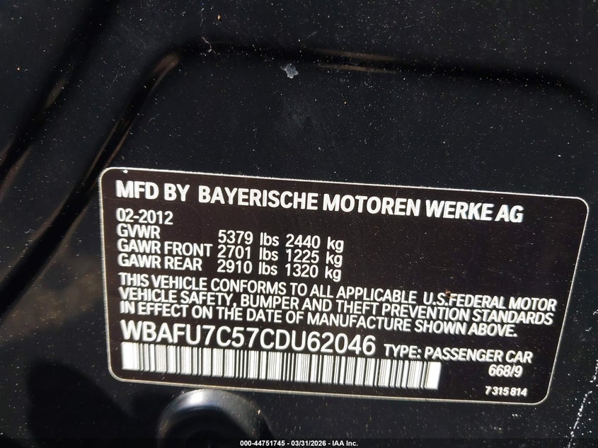 • WBAFU7C57CDU62046