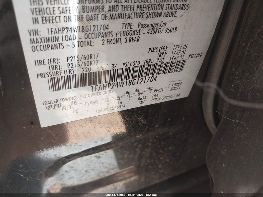 • 1FAHP24W18G121704