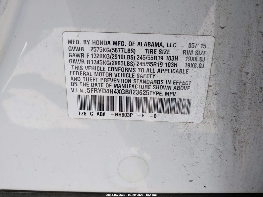 • 5FRYD4H4XGB023625