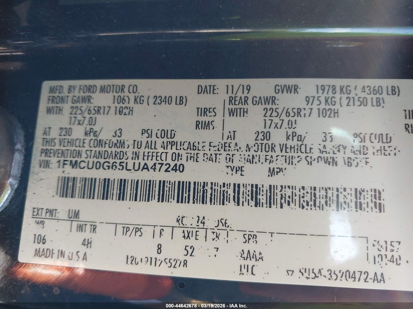• 1FMCU0G65LUA47240