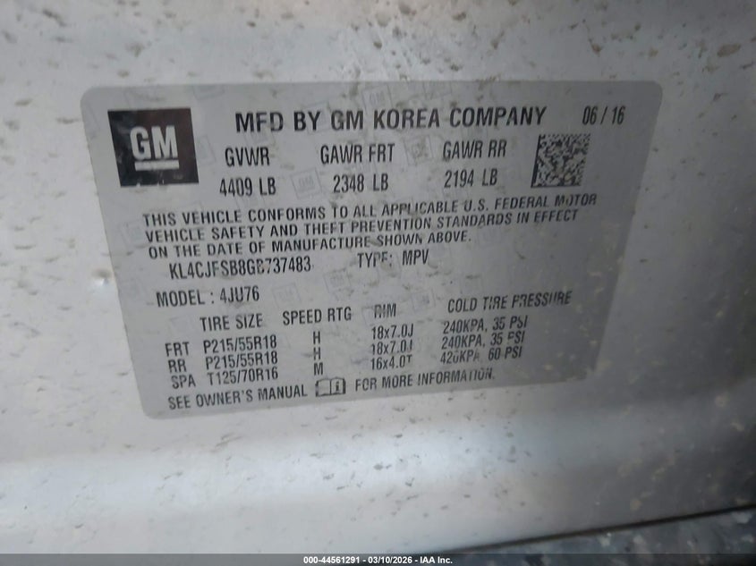 • KL4CJFSB8GB737483